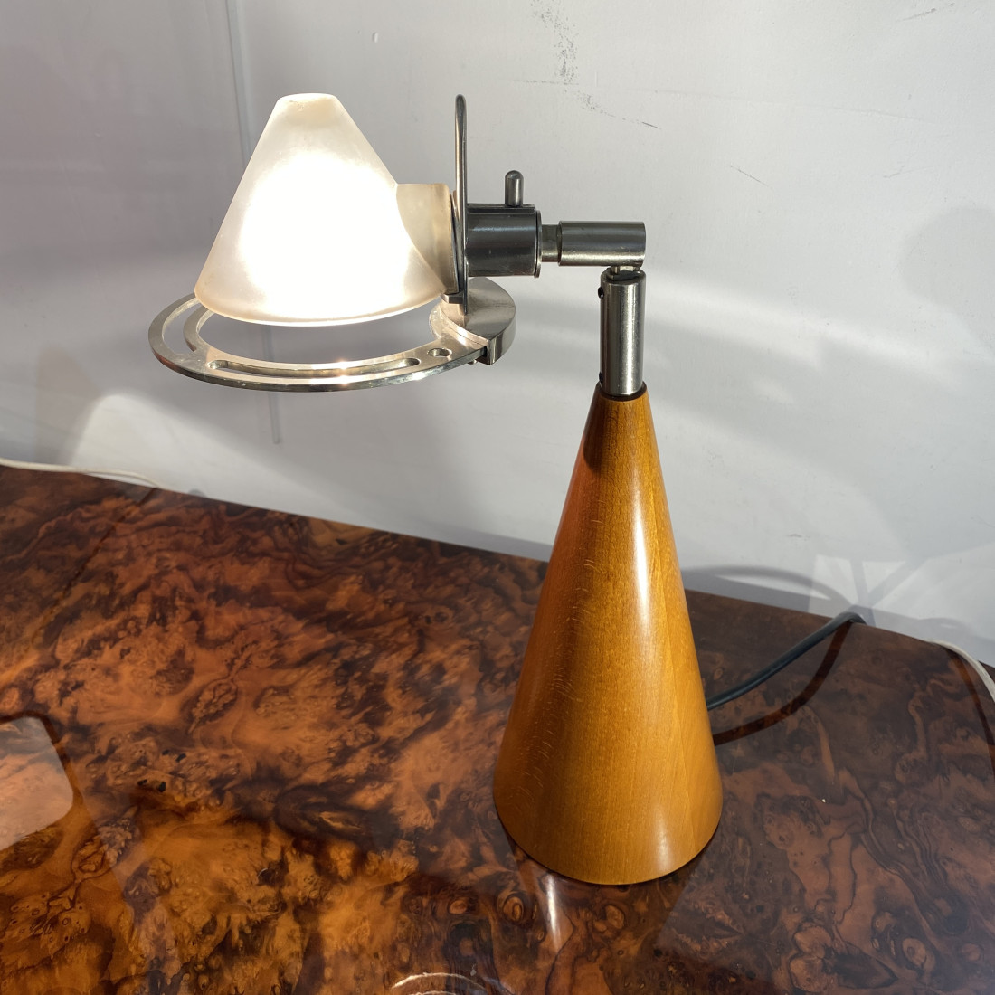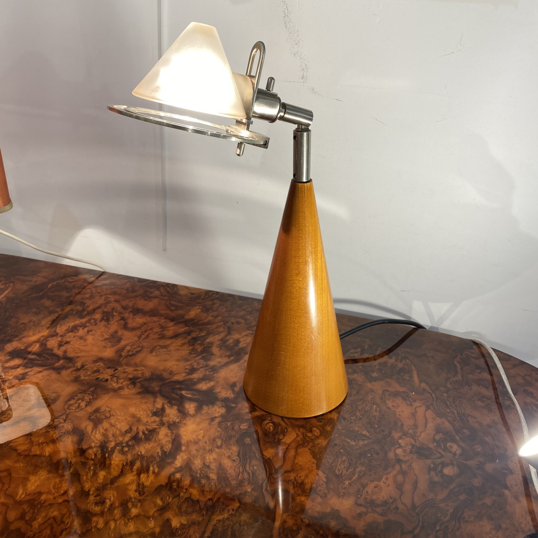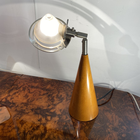 rare lampe design de table en verre dépoli conique d'époque 1970