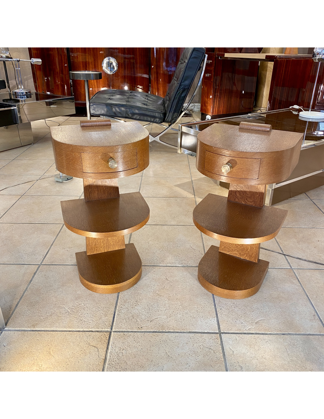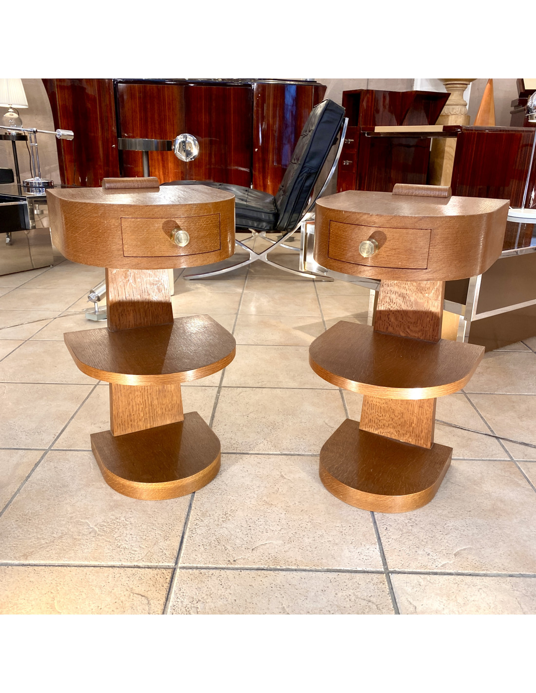 paire de chevet Moderniste en chêne d' Amérique d'époque Art Deco 1930